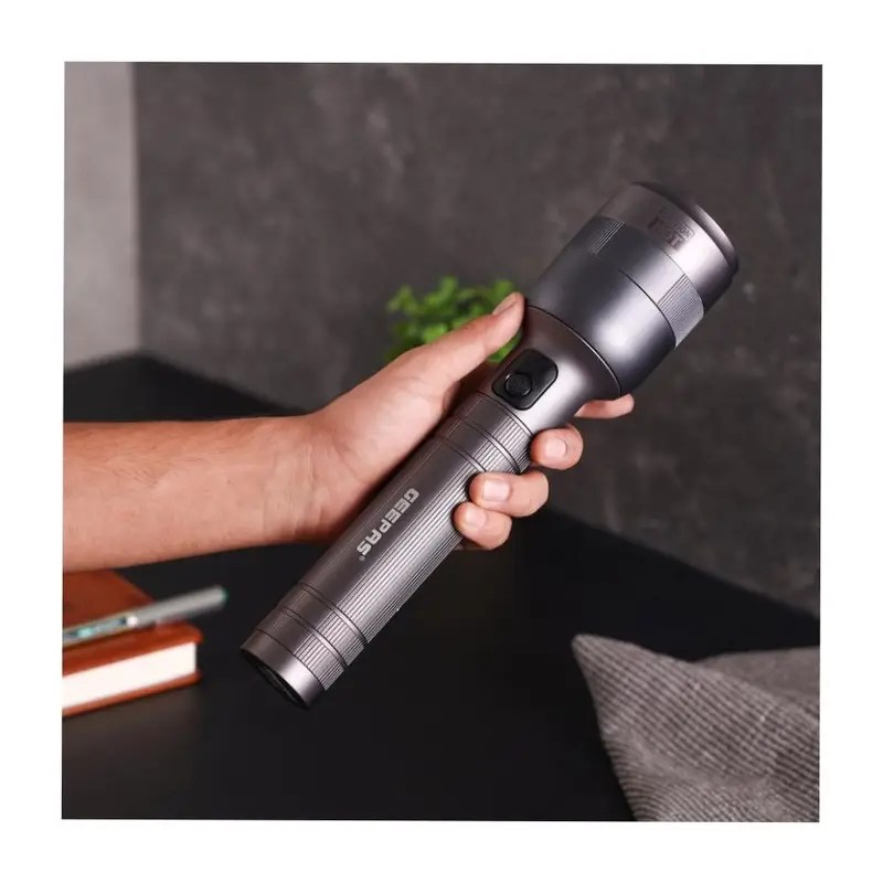 The Geepas GFL51081Z Digital Zoomable LED Flashlight is a durable and high-performance lighting tool designed for both indoor and outdoor use. Featuring a 60W high-power laser LED, it delivers up to 3500 lumens of brightness with a beam distance of 3700 meters.